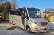 Sedili ergonomici e reclinabili, vetri doppi antiappannamento, climatizzatore, radio e monitor LCD, frigobar, sospensioni ad aria,punti ricarica cellulare in ogni seduta. 29 posti + posto hostess + autista